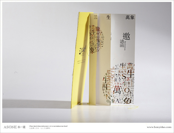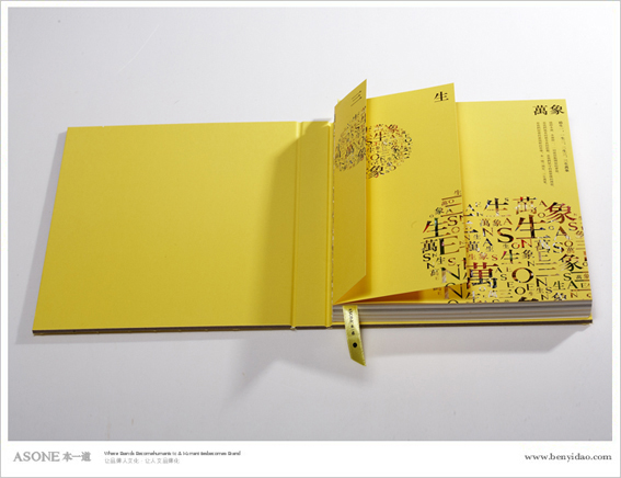 本一道品牌画册以“三生万象”为主题,对本一道的过去,现在,未来做了回顾及展望。三生万象,心生万象。三年来,ASONE本一道只做了一件事:人文.品牌。在当代,品牌以人文创造。本一道品牌策划机构推崇商业与人文结合,创新品牌人文新境界,用人文升华品牌价值正成为行业的新标杆。